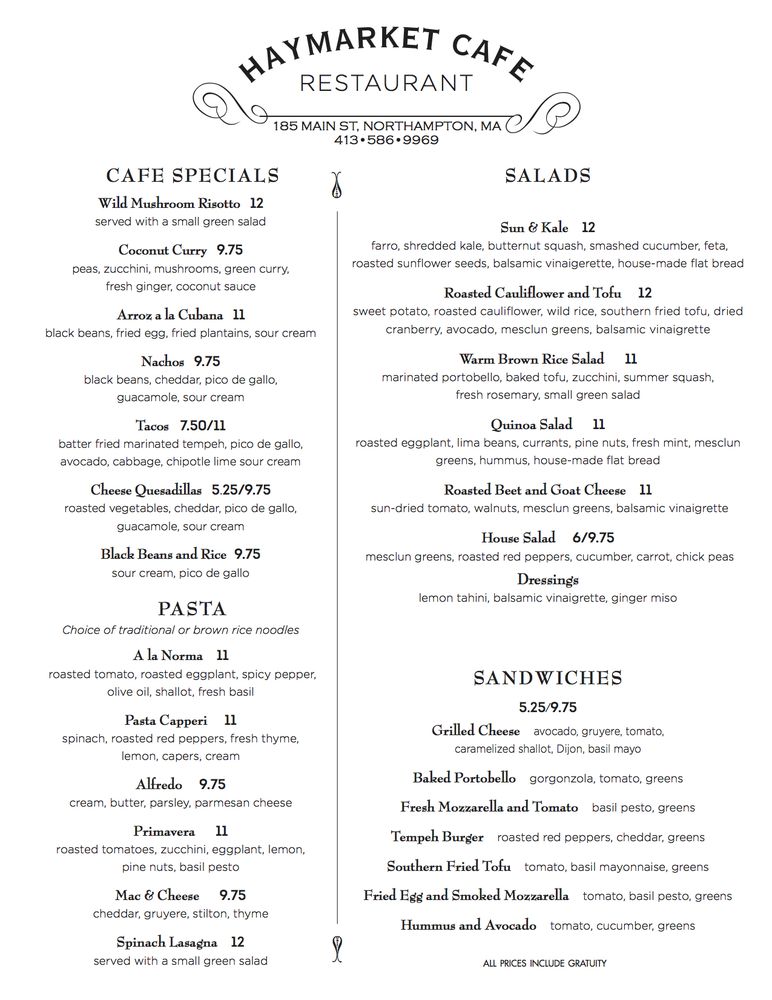 Introducing the menu at Haymarket Cafe, located in the heart of Northampton, MA, offers a delightful array of wholesome options for every palate. Renowned for its breakfast all day ethos, the café serves standout dishes like Shakshuka and Huevos Rancheros, priced at $10.50. The vibrant flavors extend to the soups, featuring the exceptional Sambar — a South Indian lentil soup with idli, praised for its comforting warmth during winter. Sandwich lovers will relish the gourmet Grilled Cheese, crafted with fresh focaccia and a choice of exquisite cheeses for $5.25.